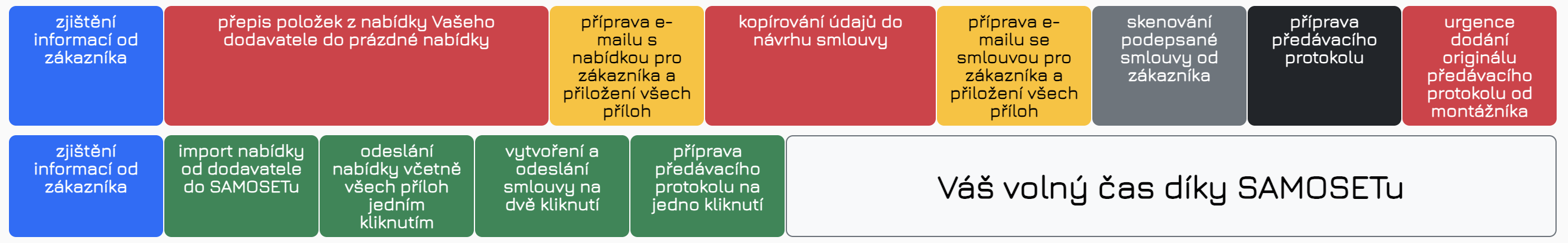 SAMOSET Vám ulehčí papírování od prvního kontaktu se zákazníkem přes nabídky, smlouvy až k předávacím protokolům, vše online a na jednom místě.